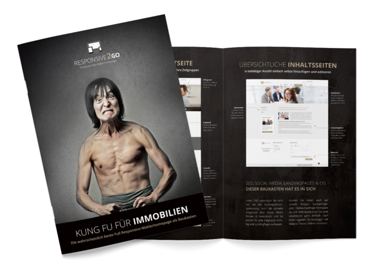 Sind Sie Makler und auf der Suche nach einem modernen Internetauftritt für Ihr Unternehmen? Dann informieren wir Sie gerne ausführlich zu unserer professionellen Full-Responsive-Maklerhomepage „Responsive2Go“. In unserer Broschüre finden Sie alle wichtigen Informationen zu Aufbau, Design, individuellen Frames und zum Thema Suchmaschinenoptimierung.